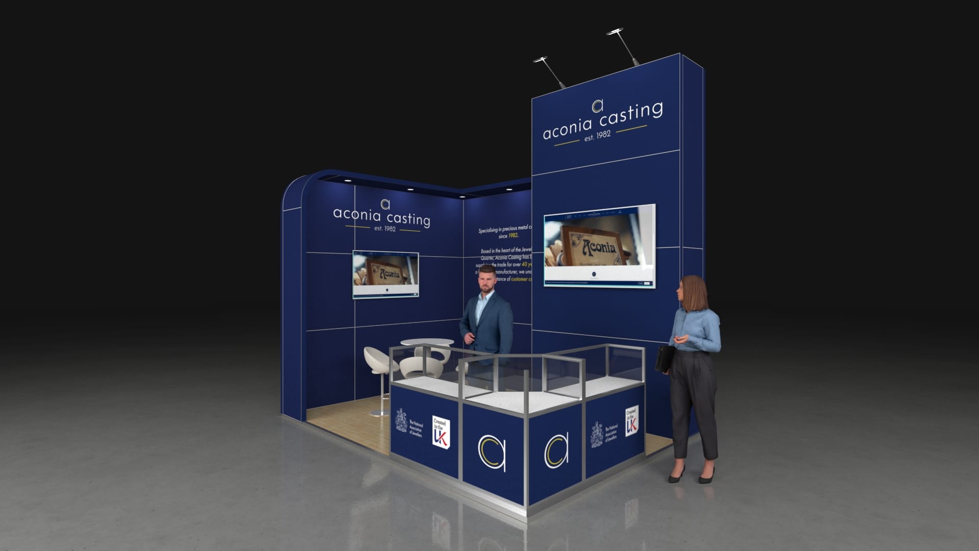 All stands are hired as an all-inclusive package, so furniture, AV and elements such as custom branded counters can be added at no extra cost.